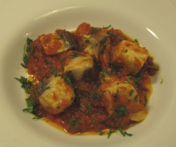 - Disponga el atún salpimentado encima de los ingredientes de la salsa, cierre la tapa y programe el menú Pescados.