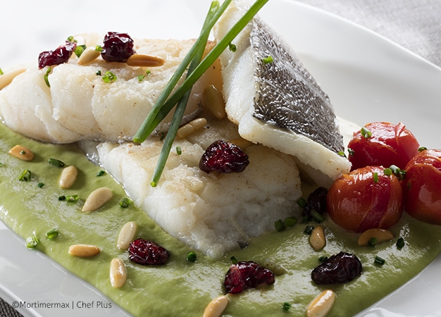 - Vierta el aceite y el resto de ingredientes en la cubeta, excepto el bacalao. Remueva bien para deshacer los grumos de harina y disponga el bacalao encima. Cierre la tapa y programe el menú Pescados.