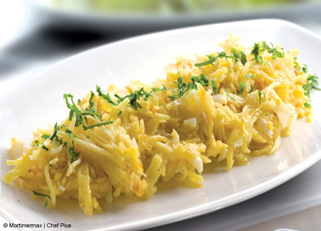 - Pele y corte la cebolla y los ajos en juliana; pique el perejil; pele las patatas y córtelas en tiras muy finas.