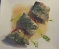- Para servir, haga un lecho de cebolla y tomate en el fondo del plato y disponga la caballa encima.