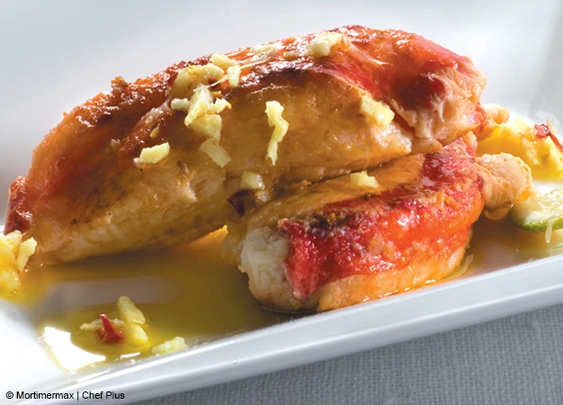 - En un recipiente, mezcle el zumo y la ralladura de lima con el ajo, la guindilla, el jengibre y el aceite.