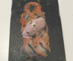 - Adorne el carpaccio con eneldo y sírvalo acompañado de la crema.