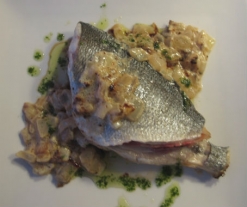 - Rellene la dorada con el beicon y dispóngala en la cubeta, sobre la cebolla. Añada el agua y la nata y cierre la tapa.