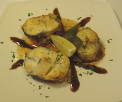 - En un bol, vierta la mitad de la picada, disponga encima las rodajas de esturión (en una sola capa), salpimiente, espolvoree el resto de la picada y cubra con el vino blanco. Deje marinar durante al menos 2 horas.