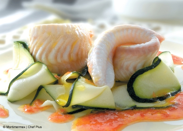 - Salpimiente los filetes de lenguado, enróllelos sobre sí mismos y sujételos con un palillo. A este procedimiento se le llama hacer popietas.