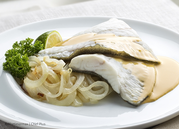 - Introduzca el aceite, las escalonias y el rodaballo en la Chef Plus Induction. Agregue la maicena diluida en el albariño.