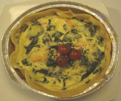- En un bol, bata enérgicamente los huevos, añada una pizca de sal e incorpore la nata líquida y la leche. Pique finamente el salmón y agréguelo junto con las espinacas.