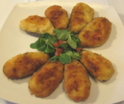 - Cancele el menú y mezcle la bechamel con la carne de mejillón y gamba. Utilice la masa resultante para rellenar las cáscaras de mejillón y luego páselas por harina, huevo y pan rallado.