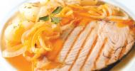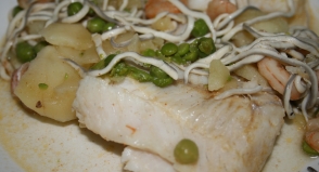 Merluza con juliana de verduras al aroma de limón y tomillo