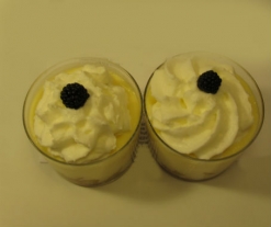 - Antes de servir, monte la otra medida de nata con 25 gramos de azúcar, dispóngala por encima de las copas y decore con unas hojitas de menta.