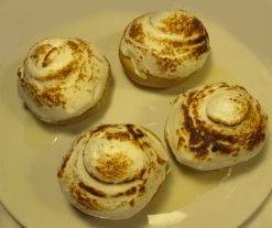 - Cuando las manzanas estén templadas, disponga el merengue encima y caramelícelo con un quemador.