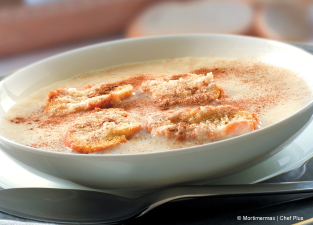 - Para servir, distribuya la crema en platos hondos con las tostadas o bizcochos encima; espolvoree la canela en polvo.