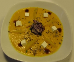 - Introduzca la calabaza, con una pizca de orégano, en la cubeta de la Chef Plus Induction. Rectifique la sal, remueva y vierta las 4 medidas de agua y el zumo de naranja.