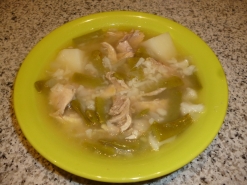- Pelar y cortar la patata y la cebolla, trocear las judías y el puerro. Si se prefiere, el puerro se puede poner entero y usarlo sólo para dar sabor a la sopa. Añada agua hasta cubrir los ingredientes.