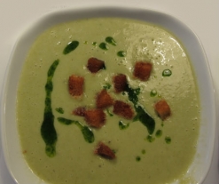 - Cuando finalice, traslade la sopa a otro recipiente, retire la menta y triture.