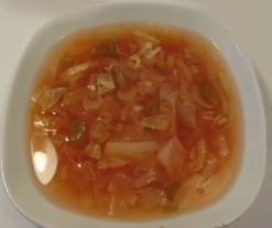 - Pele y trocee la cebolla; pique el pimiento, el apio y el ajo; trocee el repollo.