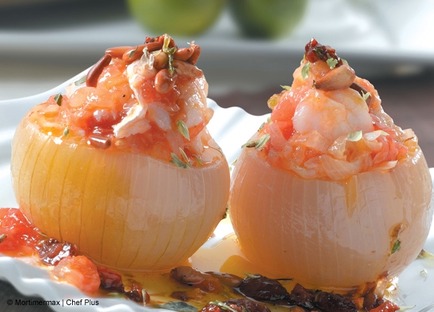 - Programe el menú Freír/Sofreír 10 minutos a 180º y rehogue durante 5 minutos. Luego agregue el tomate y cueza 5 minutos más. Cancele e incorpore el bacalao desmenuzado, un pellizco de pimentón y el vino. Vuelva a mezclar y rectifique de sal. Rellene con este sofrito las cebollas huecas.